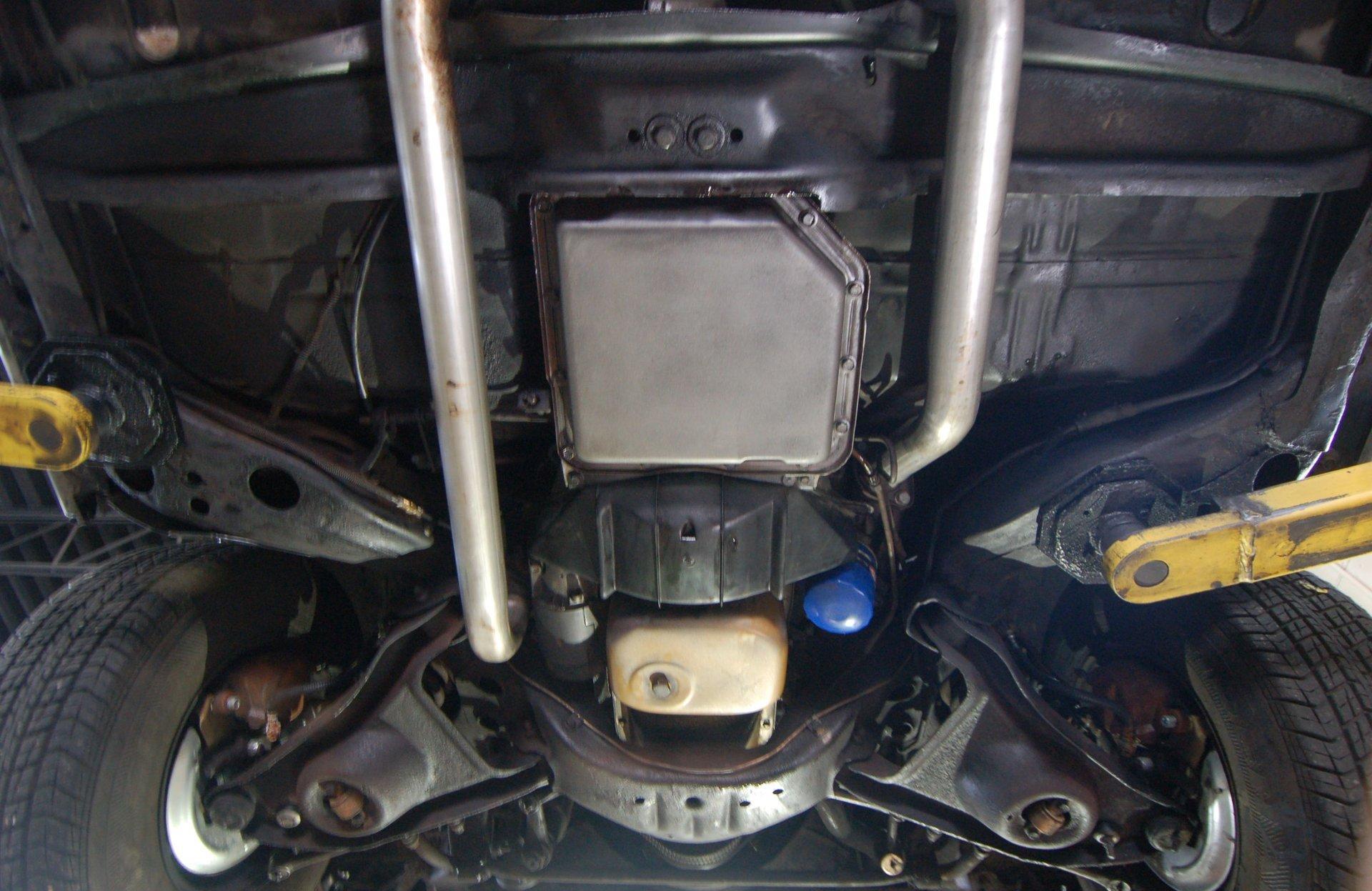 The exterior shows a deep shine with smooth body lines. The car sits on the correct color matched wheels and rides on raised white letter tires. The vinyl top has a few small imperfections, and there are a few faint blemishes around the car, but nothing noticeable from a few feet away. The underside is very clean with solid frame rails, rockers, and rear spring mounts.