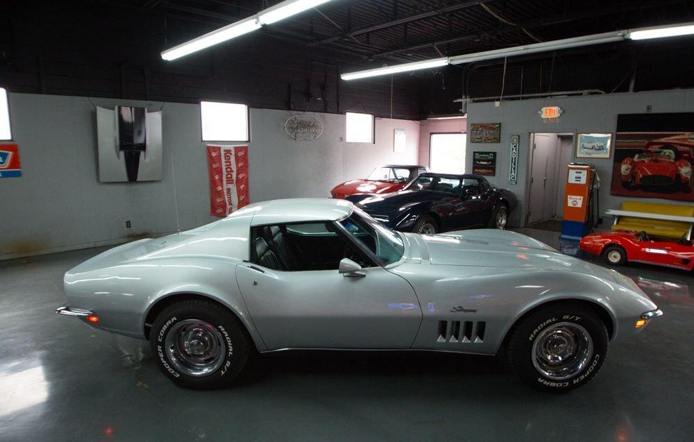 1969 Corvette Stingray Coupe, Numbers Matching 350 V8, 4 Speed Manual Transmission, Cortez Silver Exterior with Black Vinyl Interior, Only 54,725 Miles, Correct Trim and Paint Codes, Original Date Coded Glass, Original Distributor and Alternator, Rally Wheels with New Raised White Letter Tires, T Tops, and Much More!